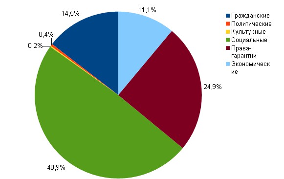 Распределение обращений к Уполномоченному по группам конституционных прав представлено в таблице 1 и на рисунке 1.