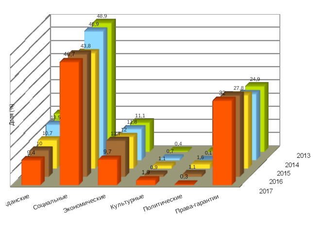 Рис. 2. Распределение обращений граждан по группам прав в 2013-2017 гг.