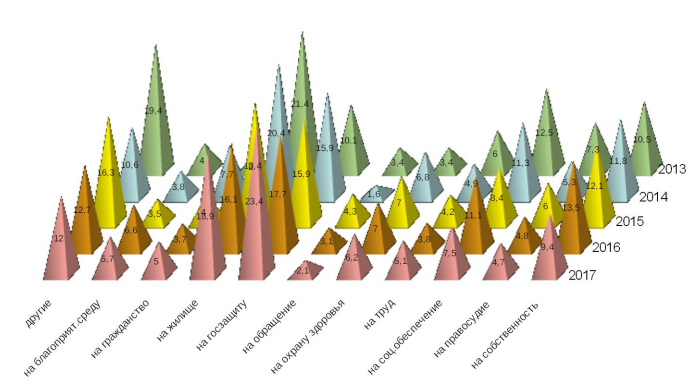 Рис.3. Распределение обращений по видам конституционных прав в 2013 - 2017 годах