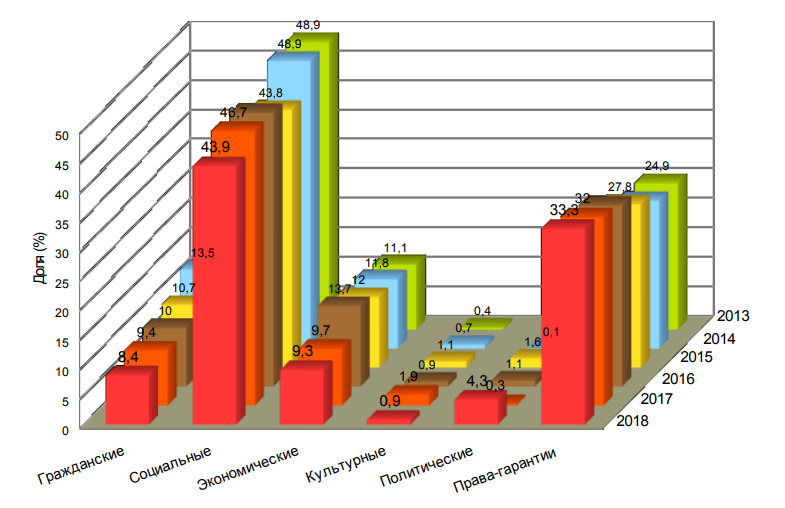 Рис. 2. Распределение обращений граждан по группам прав в 2013-2018 гг.