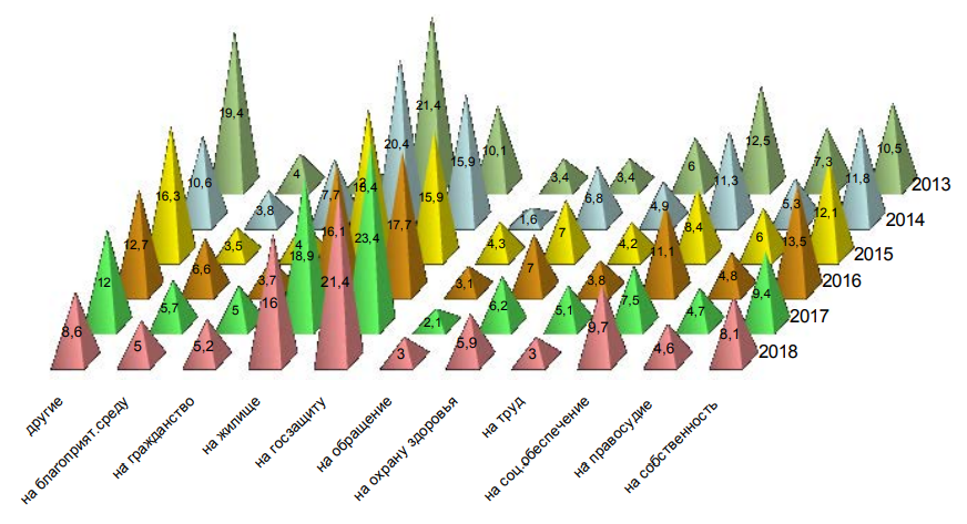 Рис.3. Распределение обращений по видам конституционных прав в 2013 - 2018 гг.