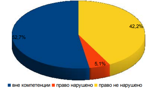 - по итогам рассмотрения жалоб, только в 5 % из них, право признано нарушенным;