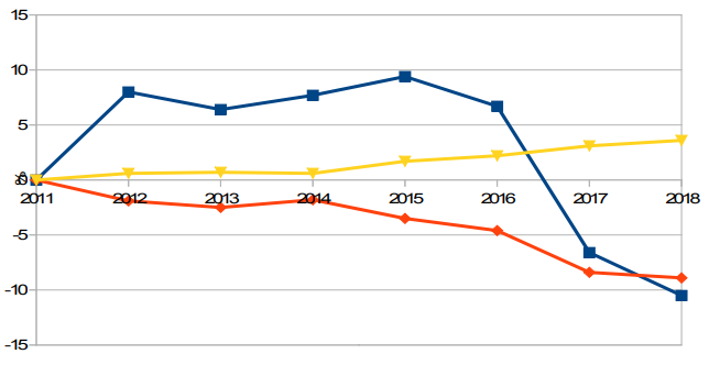 Рис. 10. Динамика экономических индикаторов Воронежской области за 2012-2018 гг.