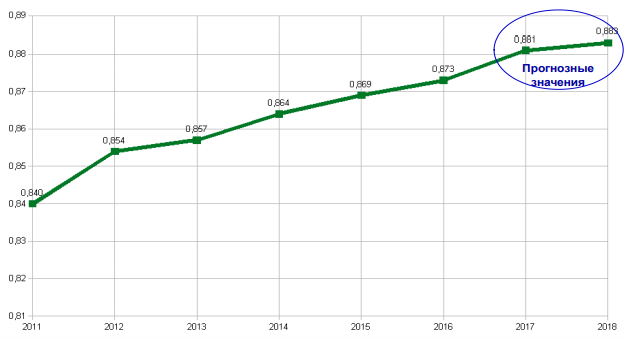 ● Индекс человеческого развития (далее - ИЧР) рассчитывается по методике Программы развития ООН. В течение нескольких лет мониторинга наблюдается его поступательный рост с тенденцией к замедлению.