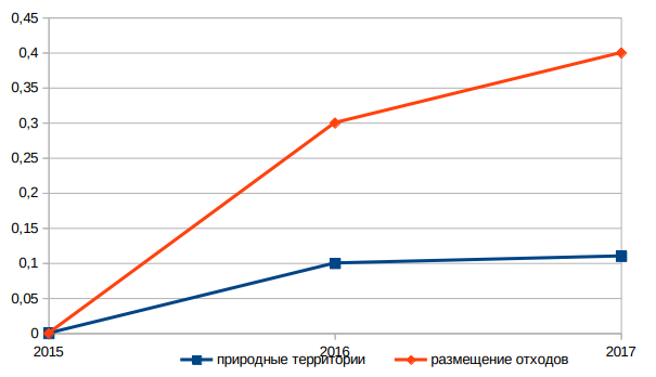 ● Согласно статистическим данным контрольно-надзорных органов в 2017 году (Пример 30 в п.4.2.9 Приложения) количество и масштабы экологических нарушений на территории области в целом продолжили снижение. Не было зафиксировано также масштабных резонансных нарушений.