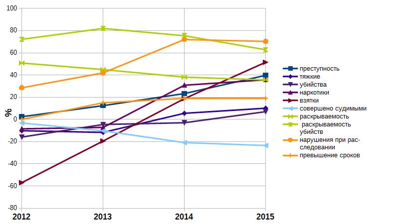 Динамика индикаторов Стратегии, характеризующих уровень реализации права на государственную защиту за период 2012-2015 гг. приведена на диаграмме (рис.21).